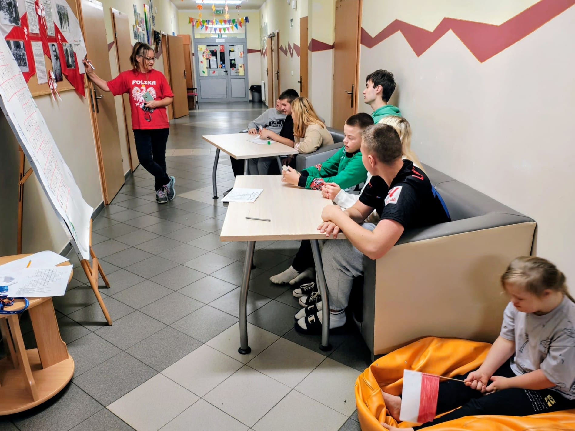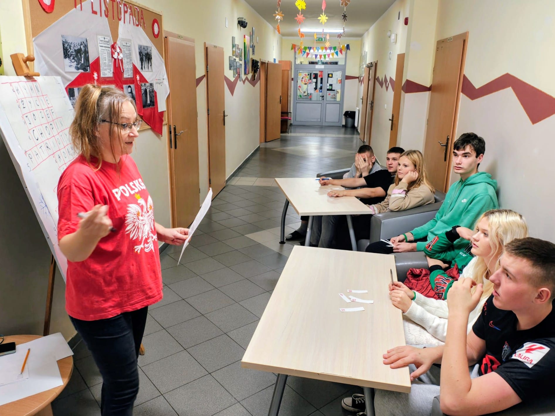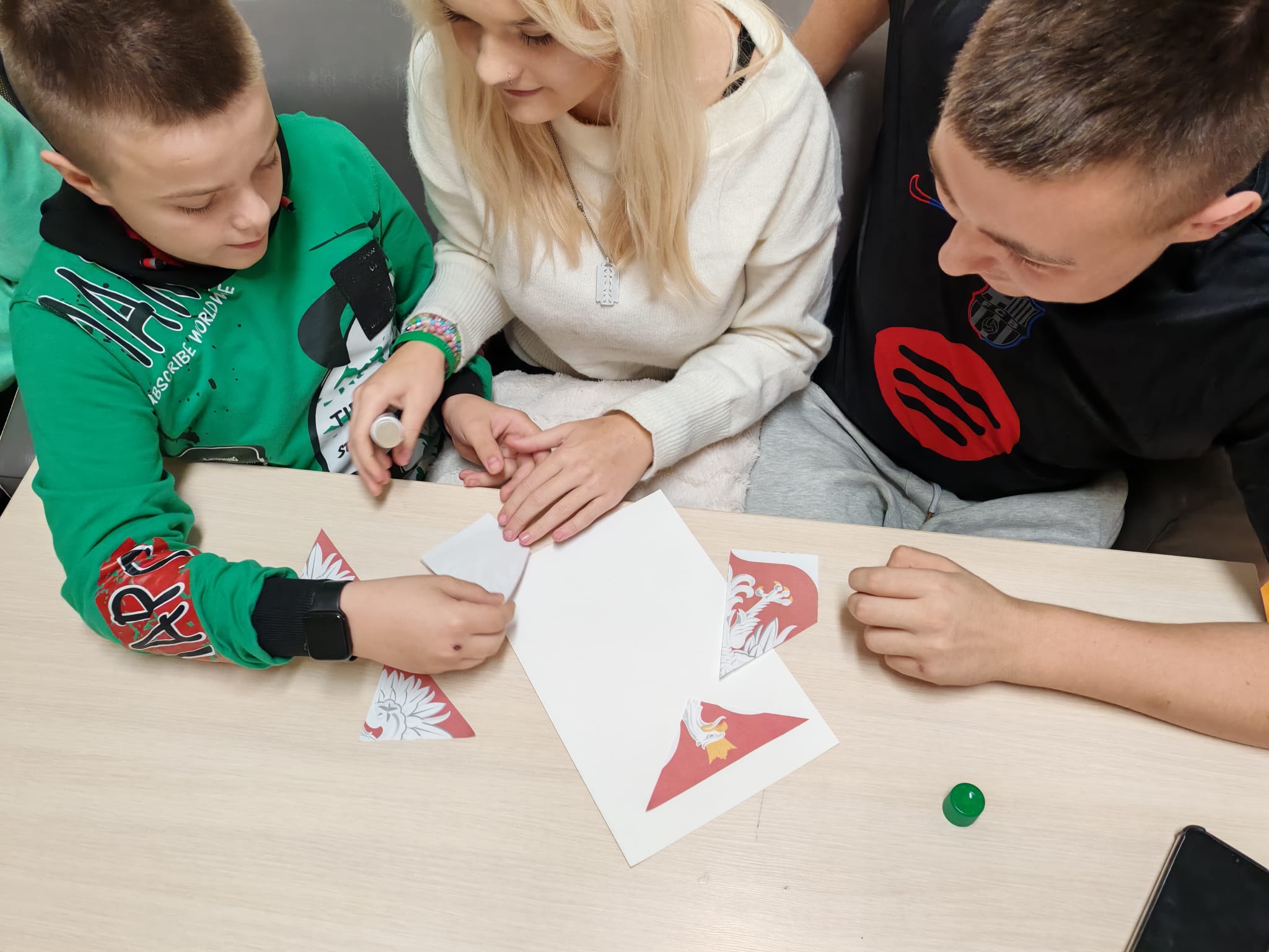 | Rozbudzanie uczuć patriotycznych zaczęliśmy od wspólnego wykonania gazetki. Następnie, podzieleni na trzy grupy rozpoczął się turniej. Podczas zdrowej rywalizacji śpiewaliśmy pieśni patriotyczne, rozwiązywaliśmy krzyżówkę, przypomnieliśmy sobie o naszych bohaterach narodowych i symbolach naszej Ojczyzny. Jesteśmy wdzięczni wszystkim, którzy przyczynili się do tego, byśmy mogli żyć w niepodległej Polsce. |