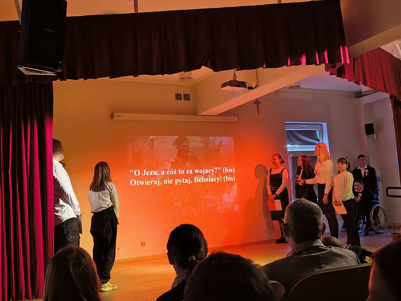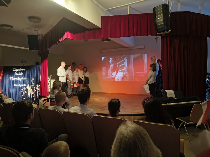 Podczas Akademii mogliśmy ich podziwiać, a cała społeczność szkolna aktywnie włączyła się w obchody – wspólnie śpiewaliśmy pieśni patriotyczne. Następnego dnia uczestniczyliśmy w ogólnopolskiej akcji „Wspólne śpiewanie hymnu narodowego”. Zajęcia w tych dniach również poświęcone były tematyce niepodległościowej – utrwalaliśmy wiedzę o historii Polski oraz rozmawialiśmy o znaczeniu wolności i patriotyzmu.