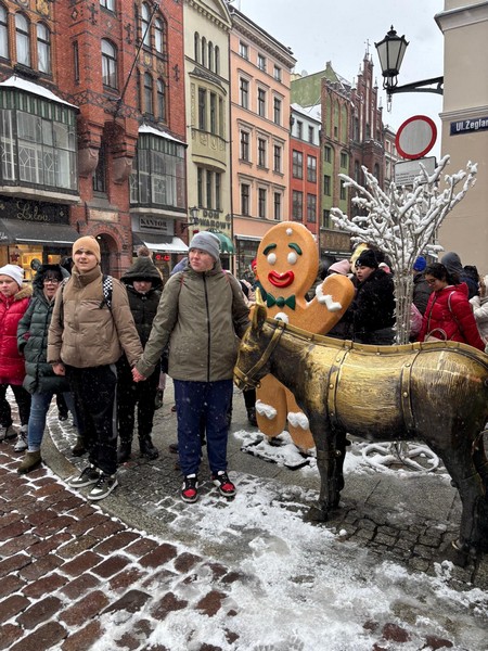 | | | Wyjazd zimowy do Torunia | | Zwiedziliśmy Ratusz, przespacerowaliśmy się między kolorowymi kramami na Jarmarku Bożonarodzeniowym i – rzecz jasna – poszliśmy zjeść co nieco. Powrót do autokaru wiódł nas obok fortyfikacji i zamku krzyżackiego, a cała trasa, choć przez zimową aurę trochę uciążliwa, była naprawdę piękna. No i oczywiście nie wróciliśmy do domu bez toruńskich pierniczków! | | |