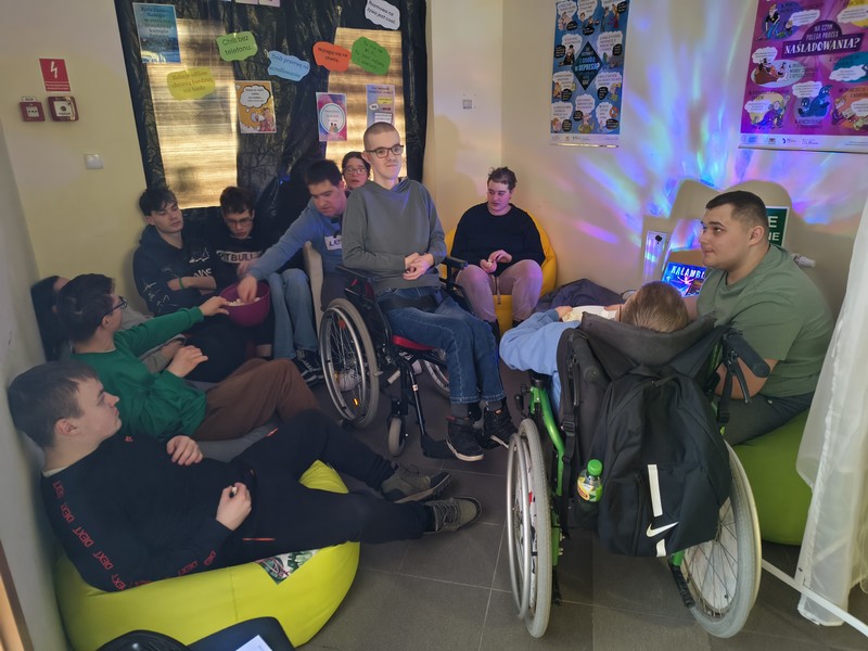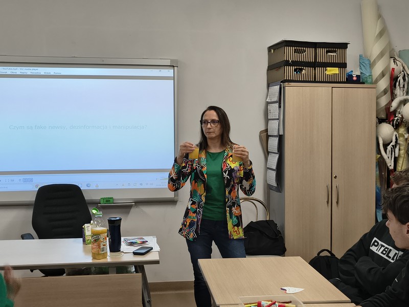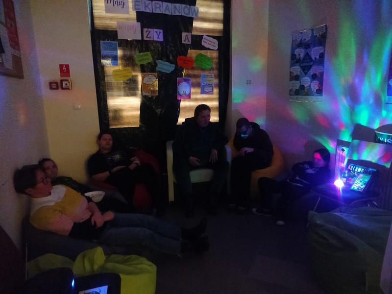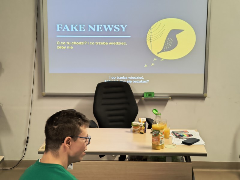| | | FAKE CZY FAKT ? | | Uzupełnieniem zajęć była specjalnie przygotowana „Strefa Offline” – przestrzeń wolna od telefonów, sprzyjająca relaksowi i integracji. Uczniowie mogli odpocząć przy muzyce relaksacyjnej oraz poczęstunku w postaci popcornu, doświadczając alternatywnych form spędzania czasu bez korzystania z urządzeń cyfrowych. | | |