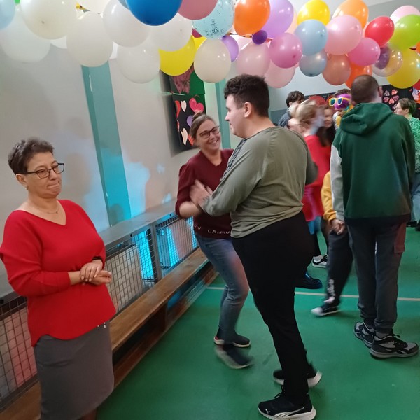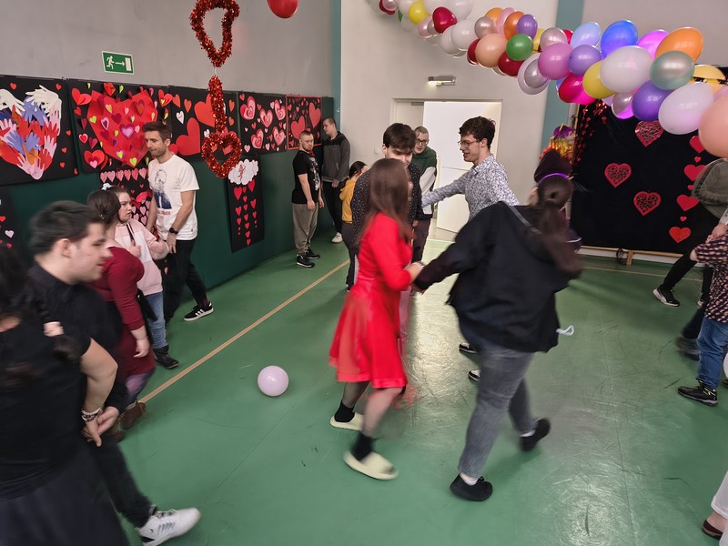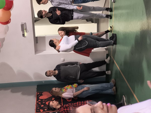 Nie zabrakło także świetnej zabawy tanecznej przy przebojach serwowanych przez Kacpra, które porwały wszystkich do tańca. Dodatkową atrakcją był pokaz multimedialny poświęcony obchodom walentynek na świecie, który w ciekawy i przystępny sposób poszerzył naszą wiedzę na temat tradycji związanych z tym świętem w różnych krajach. Był to niezwykły dzień sprzyjający integracji oraz okazywaniu sobie sympatii, życzliwości i drobnych, serdecznych gestów.