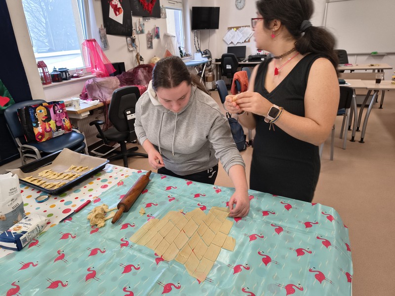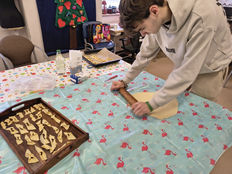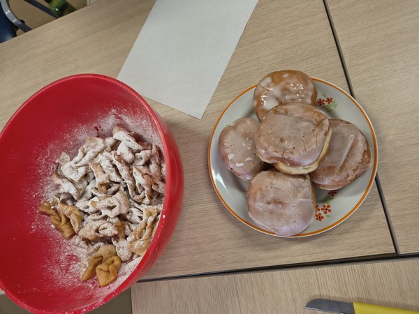 | | | Tłusty Czwartek 2026 | Dodatkową atrakcją tego dnia było wspólne wyjście w ramach zajęć kulinarnych do baru, gdzie każdy z nas mógł samodzielnie zamówić kebaba oraz poćwiczyć bezpieczne poruszanie się w przestrzeni publicznej. Nie zabrakło również rozmów o tym, jak łączyć tradycyjne smaki z nowymi kulinarnymi pomysłami – bo kto powiedział, że pączek nie może zaprzyjaźnić się z kebabem?
