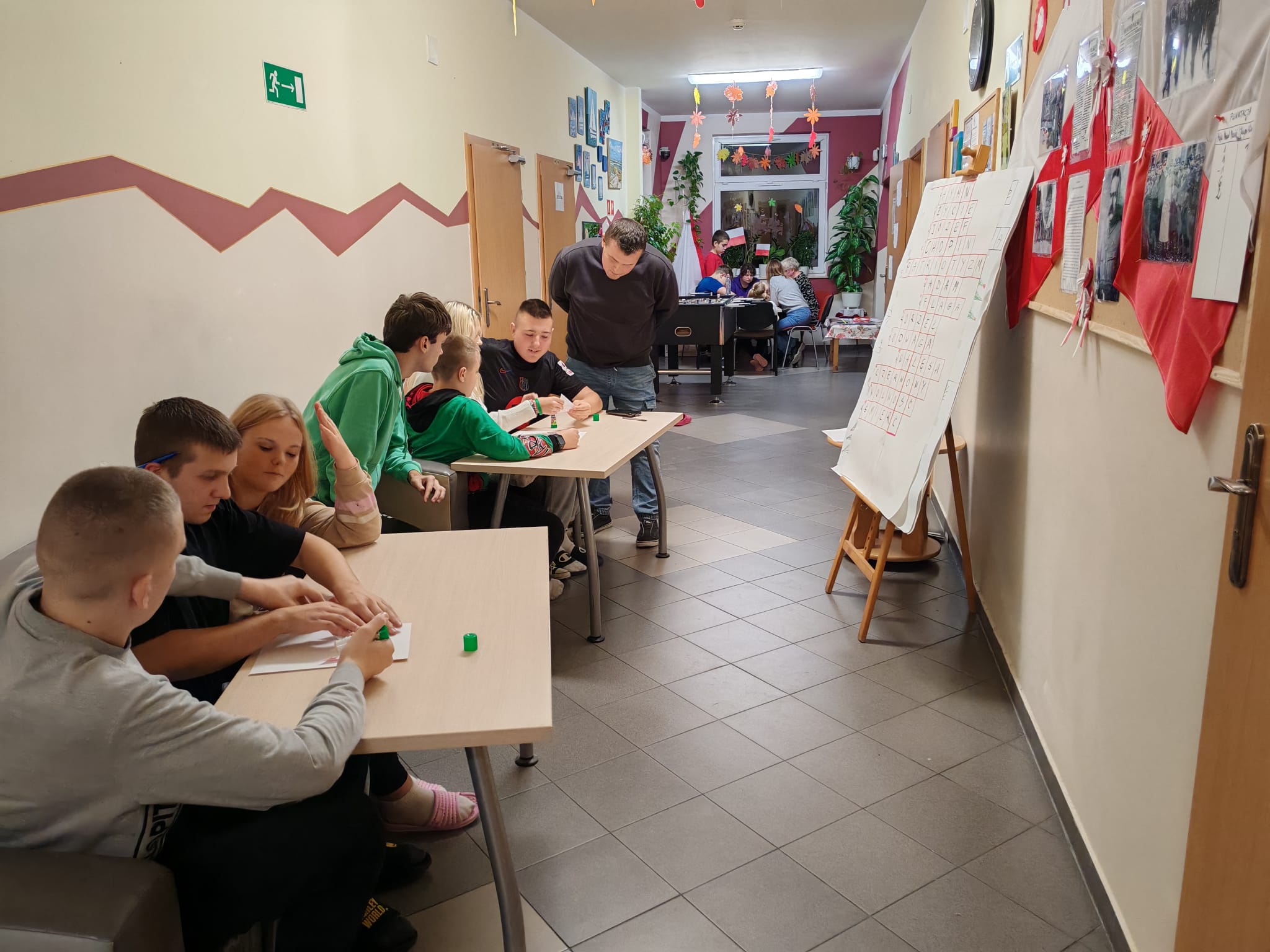 | Rozbudzanie uczuć patriotycznych zaczęliśmy od wspólnego wykonania gazetki. Następnie, podzieleni na trzy grupy rozpoczął się turniej. Podczas zdrowej rywalizacji śpiewaliśmy pieśni patriotyczne, rozwiązywaliśmy krzyżówkę, przypomnieliśmy sobie o naszych bohaterach narodowych i symbolach naszej Ojczyzny. Jesteśmy wdzięczni wszystkim, którzy przyczynili się do tego, byśmy mogli żyć w niepodległej Polsce. |