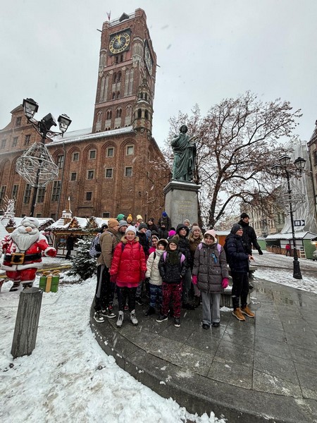 | | | Wyjazd zimowy do Torunia | | Zwiedziliśmy Ratusz, przespacerowaliśmy się między kolorowymi kramami na Jarmarku Bożonarodzeniowym i – rzecz jasna – poszliśmy zjeść co nieco. Powrót do autokaru wiódł nas obok fortyfikacji i zamku krzyżackiego, a cała trasa, choć przez zimową aurę trochę uciążliwa, była naprawdę piękna. No i oczywiście nie wróciliśmy do domu bez toruńskich pierniczków! | | |