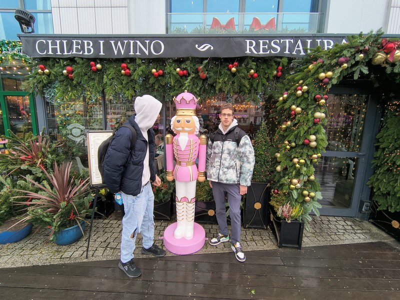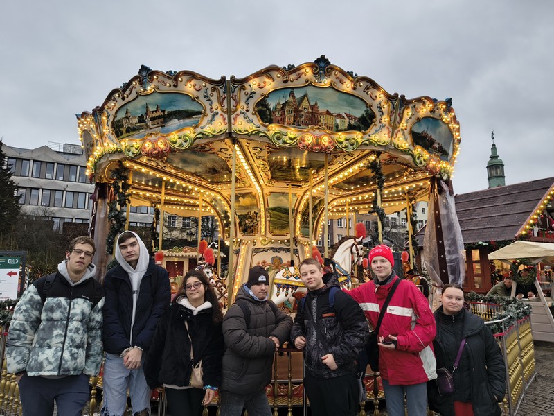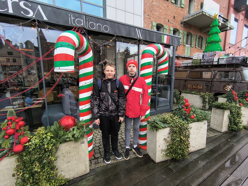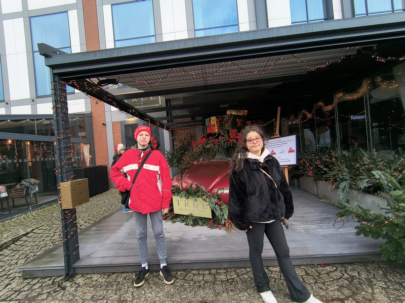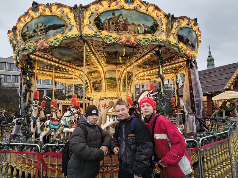 Świąteczna starówka zachwyciła wszystkich – kolorowe iluminacje, choinki i liczne dekoracje stworzyły atmosferę pełną magii, mimo że aura była daleka od zimowej. Odwiedziliśmy również jarmark bożonarodzeniowy, gdzie podziwialiśmy rękodzieło, ozdoby oraz poczuliśmy prawdziwy przedświąteczny klimat. Nie zabrakło też wizyty w galerii handlowej, w której mogliśmy zobaczyć piękne świąteczne aranżacje i dekoracje. Na zakończenie czekała na nas pyszna przekąska – tym razem między innymi burgery! Był to także świetny moment na spokojne rozmowy i integrację, zwłaszcza że dwoje naszych kolegów zbliża się do swoich urodzin, co nadało całemu spotkaniu wyjątkowy charakter.