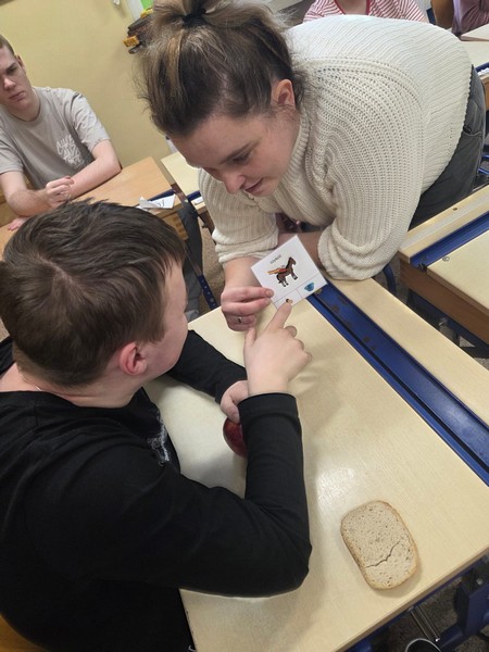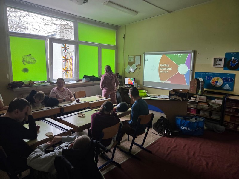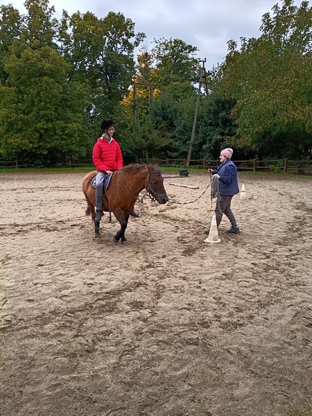 | | | Animaloterapia w I półroczu 2025/26 | | Uczniowie z dużym zaangażowaniem brali również udział a zajęciach teoretycznych w szkole, integrując się z klasami szkoły podstawowej. Był to czas utrwalania wiadomości o zwierzętach, szczególnie o koniach, ale również czas dobrej zabawy i budowania pozytywnych relacji. | | |