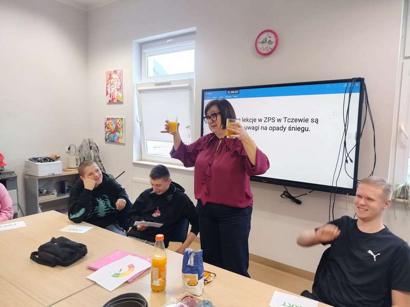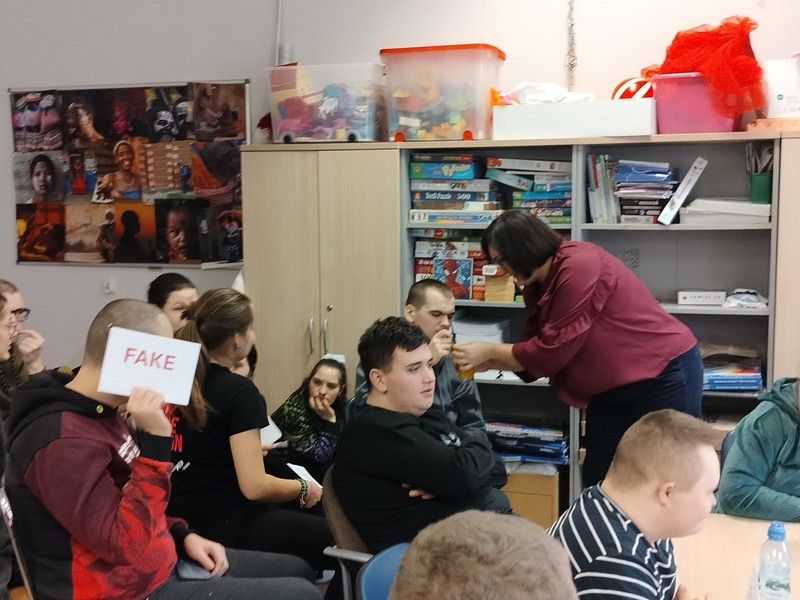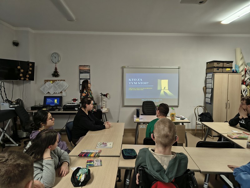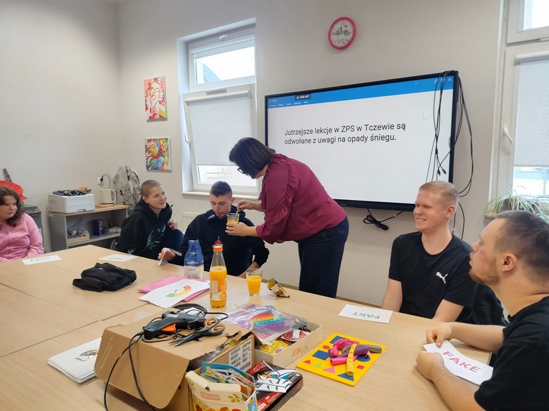 | | | FAKE CZY FAKT ? | | Uzupełnieniem zajęć była specjalnie przygotowana „Strefa Offline” – przestrzeń wolna od telefonów, sprzyjająca relaksowi i integracji. Uczniowie mogli odpocząć przy muzyce relaksacyjnej oraz poczęstunku w postaci popcornu, doświadczając alternatywnych form spędzania czasu bez korzystania z urządzeń cyfrowych. | | |