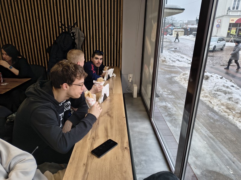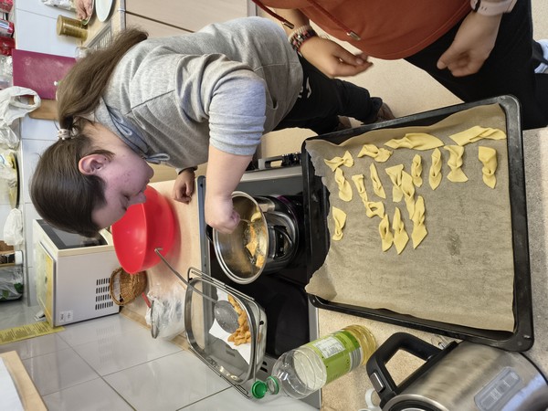 | | | Tłusty Czwartek 2026 | Dodatkową atrakcją tego dnia było wspólne wyjście w ramach zajęć kulinarnych do baru, gdzie każdy z nas mógł samodzielnie zamówić kebaba oraz poćwiczyć bezpieczne poruszanie się w przestrzeni publicznej. Nie zabrakło również rozmów o tym, jak łączyć tradycyjne smaki z nowymi kulinarnymi pomysłami – bo kto powiedział, że pączek nie może zaprzyjaźnić się z kebabem?
